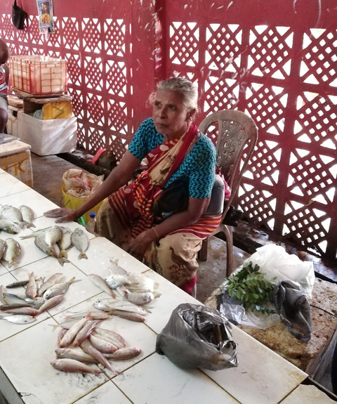 Architecturally St. James Church wasn’t as appealing as Nallur but the fact that there was a God residing inside revered by somebody, ignited my interest to go and explore its inside. After a brief visit and prayer, we left the church to explore Gurunagar a little further. By 11.15 AM we were at the Gurunagar market. We were told that the market was famous for its female fish mongers. And my first sight of the market with them explained me the alleged fame.